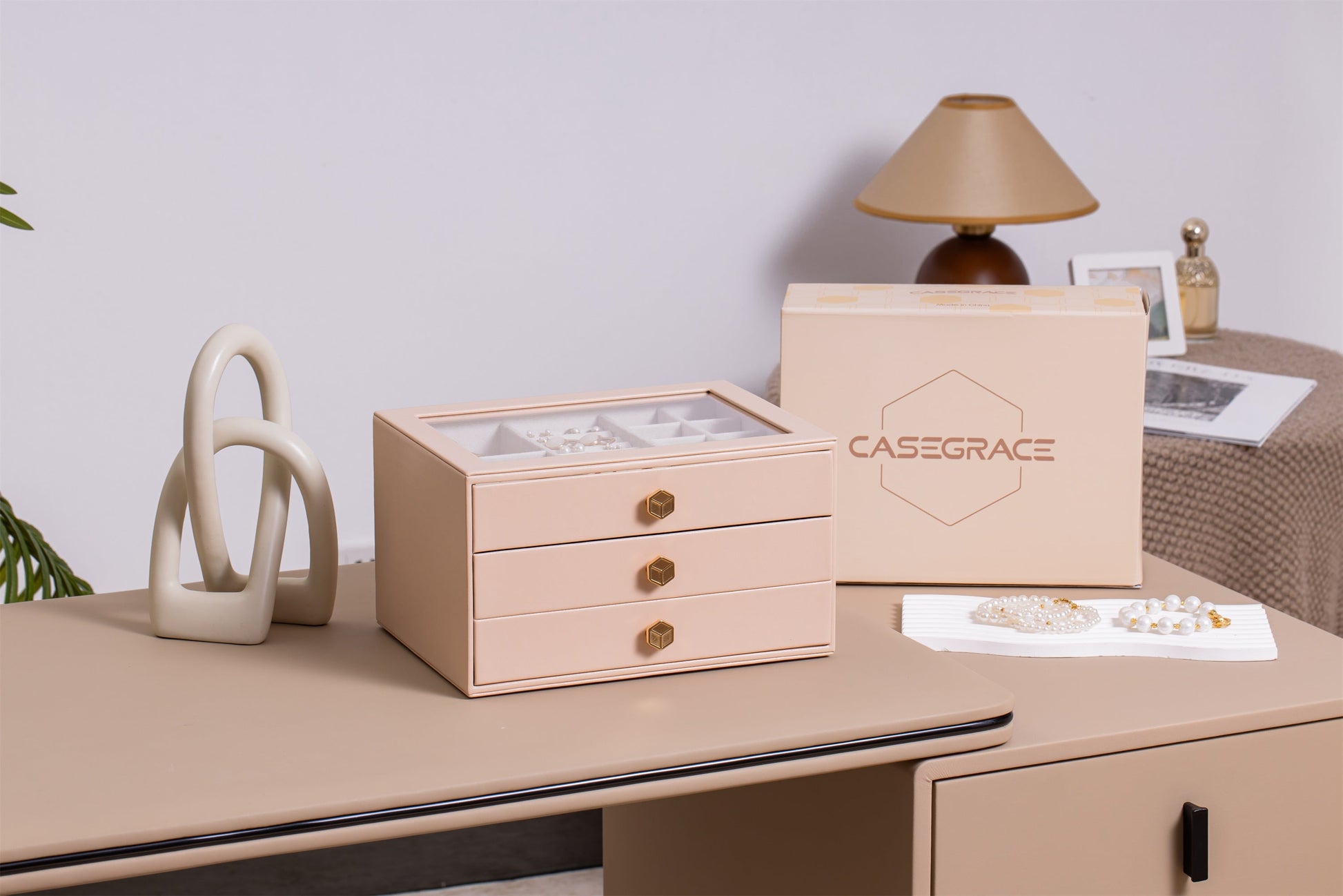 Jewelry Box for Women with Glass Lid-2 Drawers
