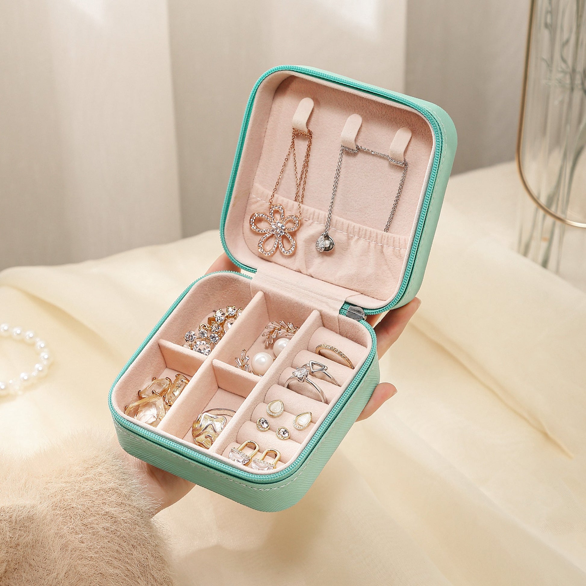 Travel Faux Leather Jewelry Box with Zip