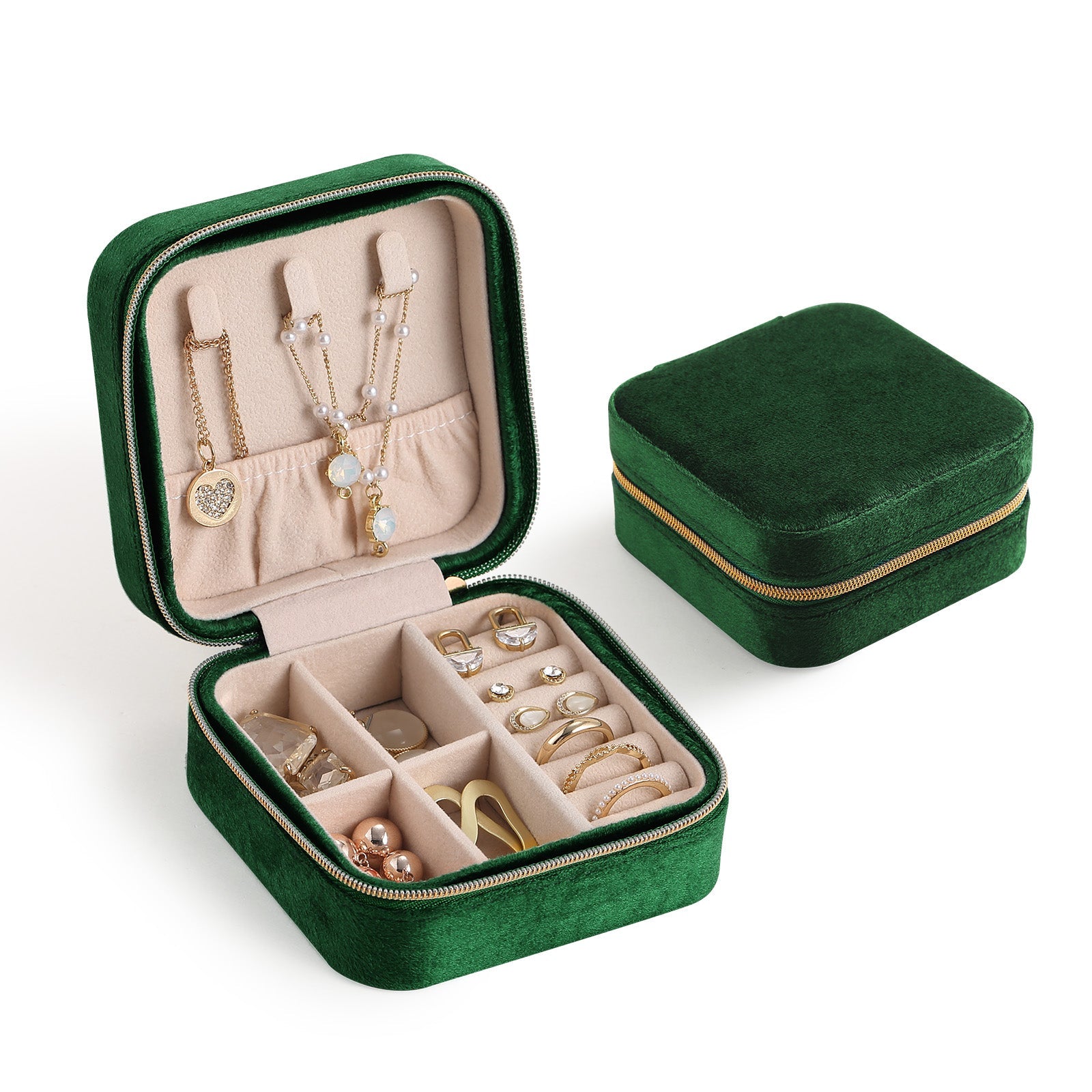 Quality Material: The high quality velvet gives the small travel jewelry box an elegant and stylish look. The metal zippers are especially durable and hold up to daily use well. Velvet and metal zipper combined make a classic luxurious necklace travel organizer.